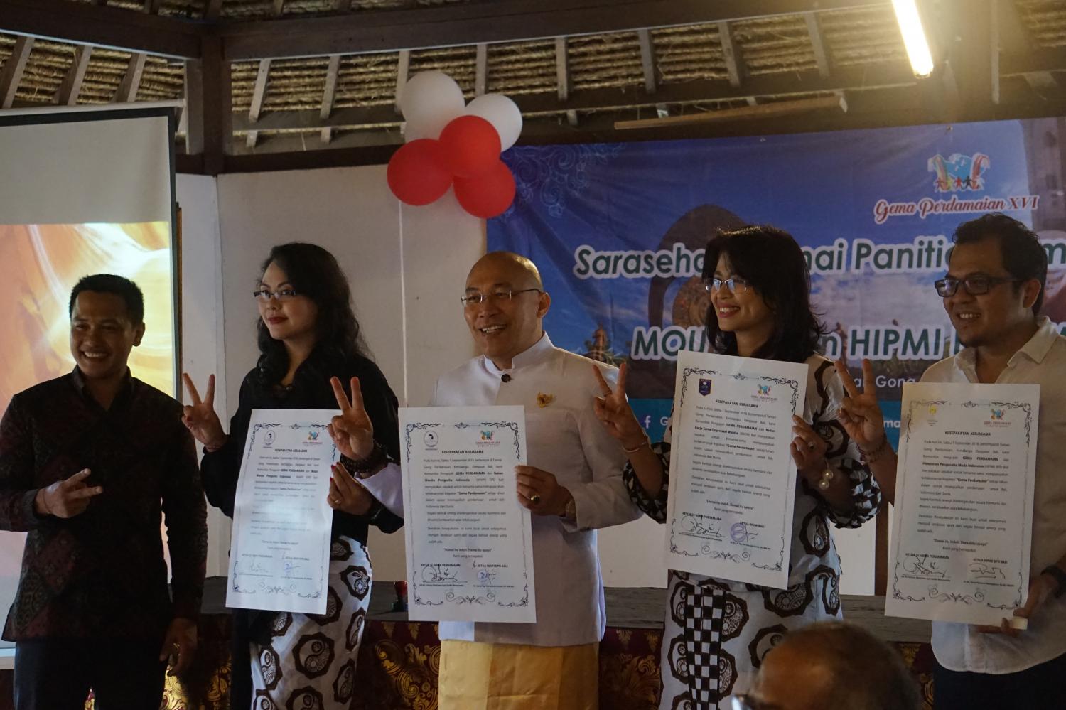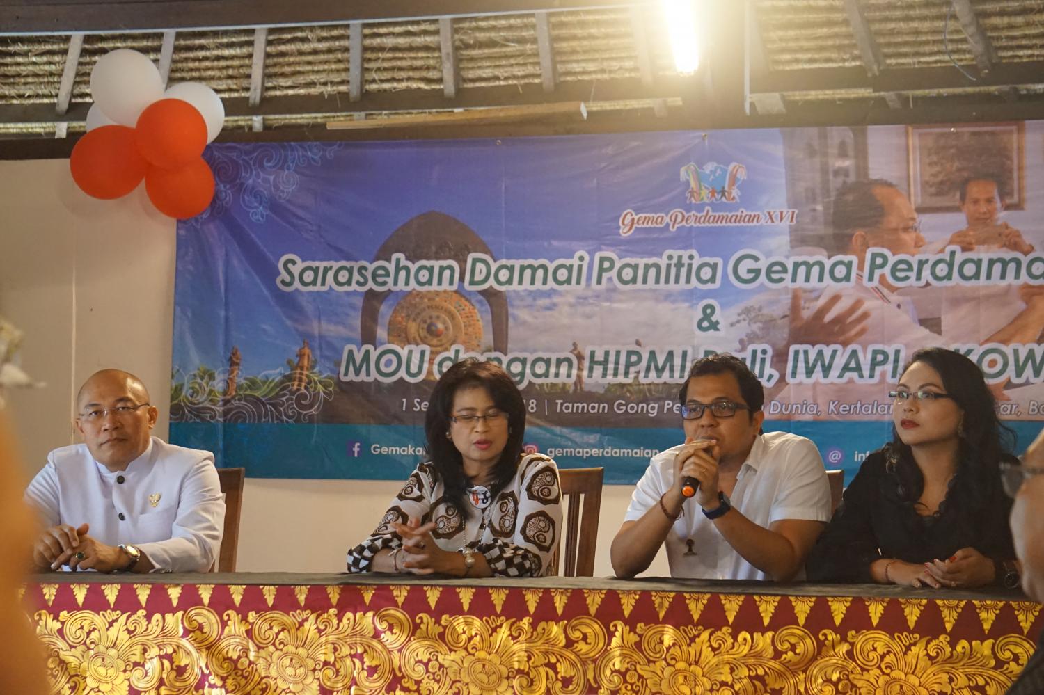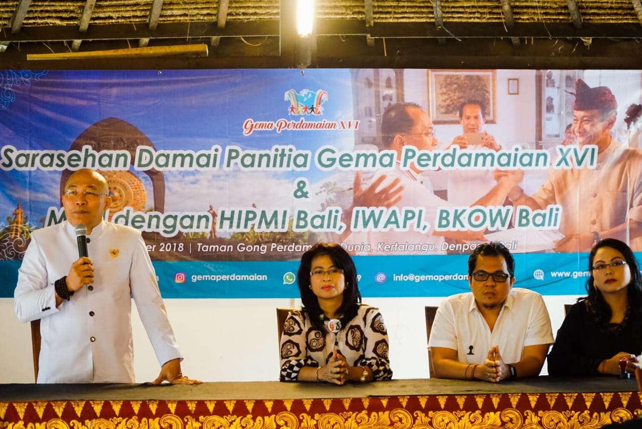 Saturday, 1st September 2018, as a follow up event after a coordination meeting in preparing a workshop committee of Echo Peace, an MOU between HIPMI Bali (Indonesian Young Entrepreneurship Association), IWAPI (Ikatan Wanita Pengusaha Indonesia – Indonesian Women Business Association) and BKOW Bali (Badan Kerjasama Organisasi Wanita – Womens Organization Cooperation Agency ) with The Echo Peace Bali Committee together will joint together hold an event of Bali Entrepreneurs Peace Workshop that coincide with World Peace Day on 21st September 2018, located in Gong Perdamaian, Kertalangu, Denpasar.