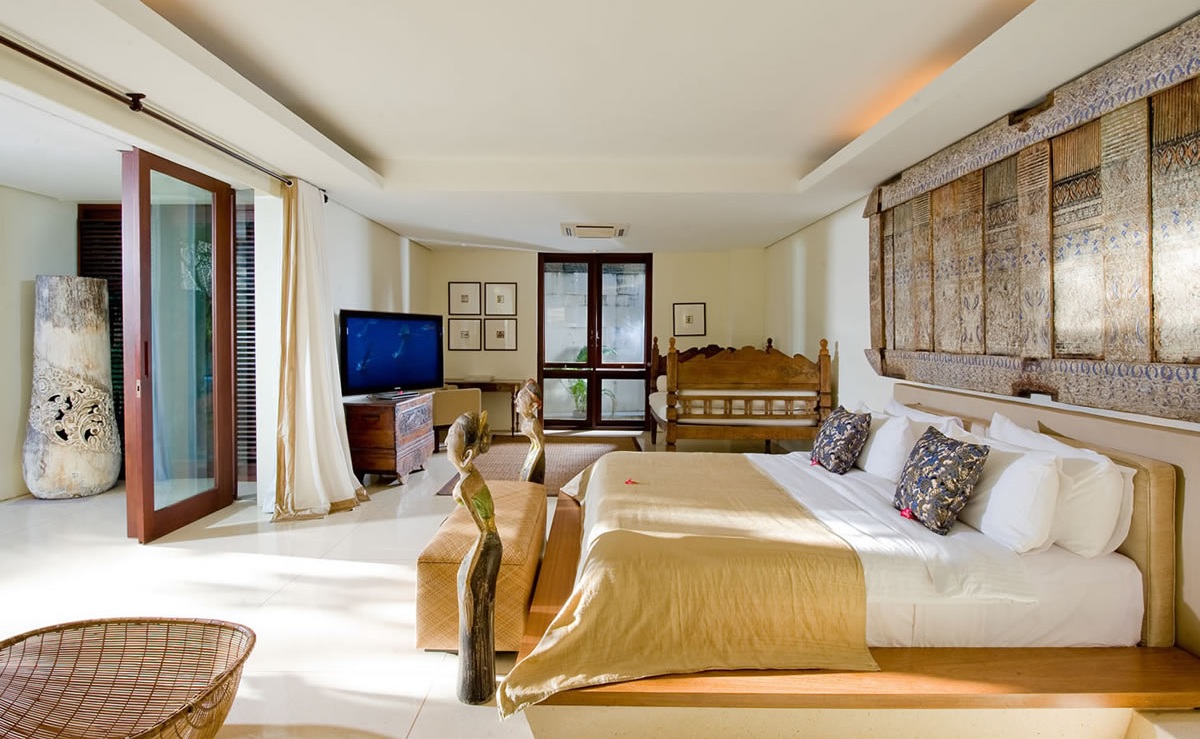 Designed by the acclaimed French interior designer, Stéphane Rémini, this modern and luxury Seminyak villa is furnished with wooden furniture, beautiful paintings and antique Indonesian sculptures.