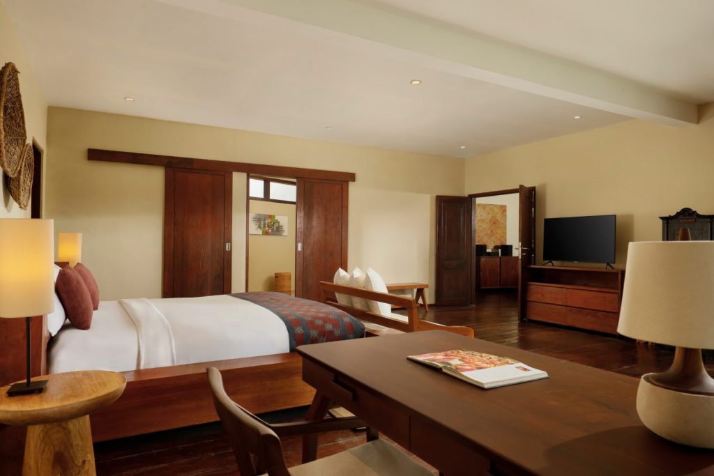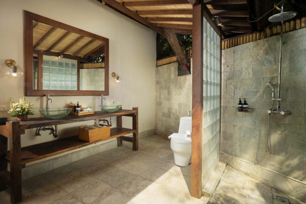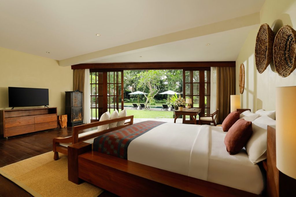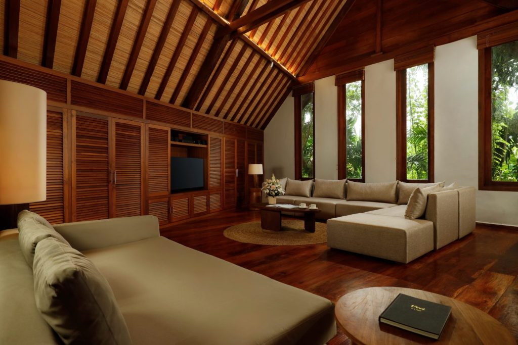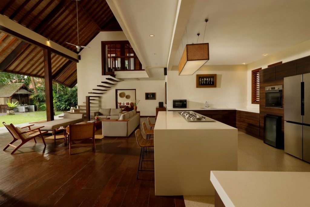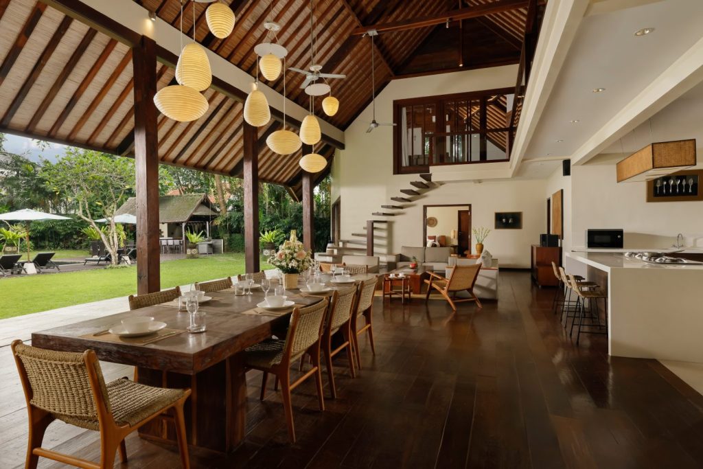 Blending traditional architecture with modern comforts, this large family villas Bali combines the charm of classic design with stylish contemporary interiors. This stunning 7 bedrooms villa is the perfect choice for those seeking large family villas in Bali or a spacious luxury group villa in Bali. Each bedroom features its own open-air en-suite bathroom, polished wooden floors, high thatched ceilings, and wide sliding glass doors that welcome in natural sunlight. With five king-size beds and four single beds—including a beautiful four-poster king—the villa is ideal for big families, groups of friends, or special gatherings. Designed with earthy tones, elegant décor, and floor-to-ceiling glass panels, every room offers both comfort and style. Guests can also enjoy modern rain showers, full vanity sets, and direct views of the tropical gardens. Truly the best family luxury villa in Bali for relaxation, events, or unforgettable holidays.